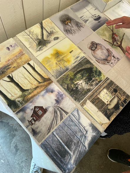 Till höger kan ni se en sneak-peak på ofullständiga målningar innan de färdigställs och ställs ut.